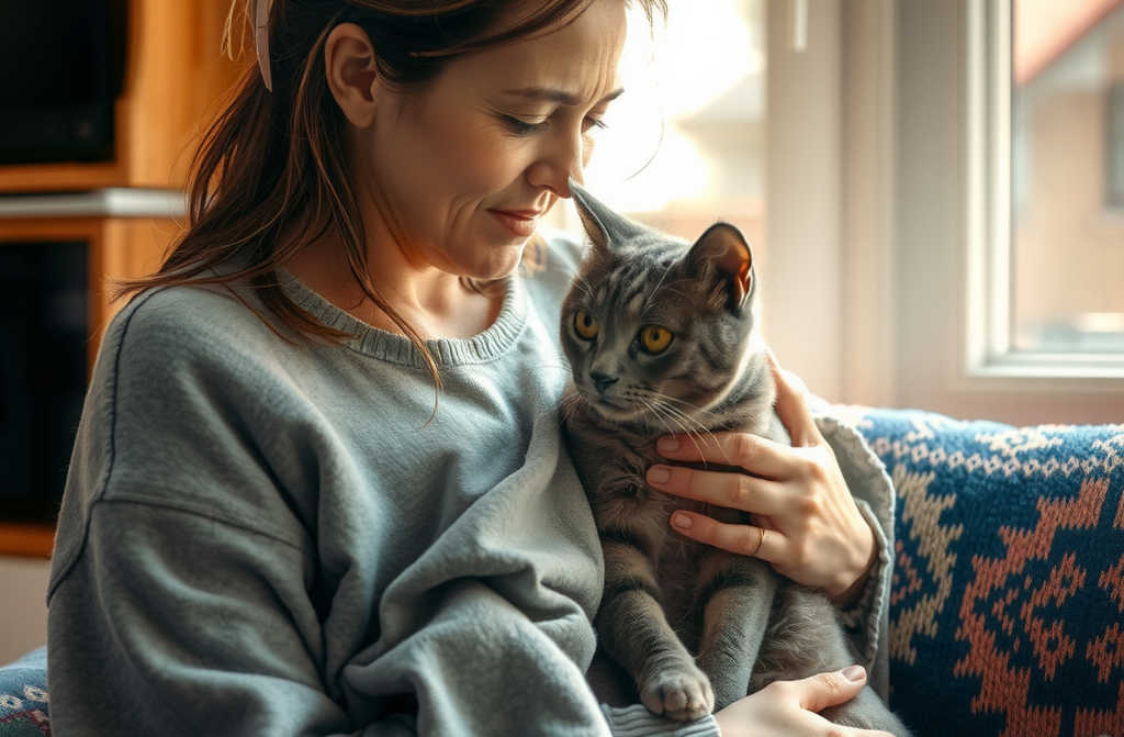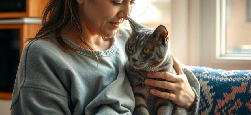 מיכל התרגשה. החתול הפצוע מצא פינה ליד רגלה ולא עזב עד שנרגעה.