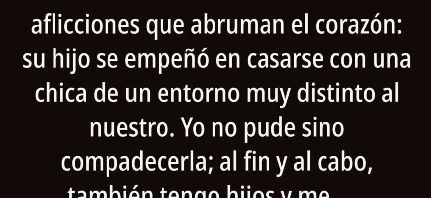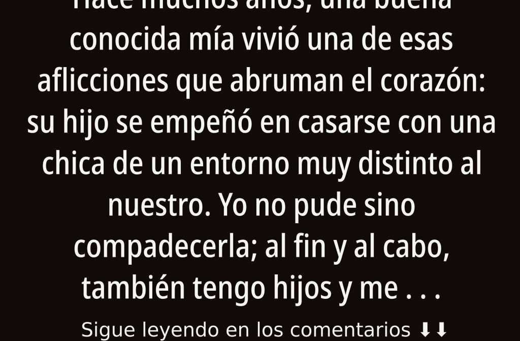 Hace muchos años, una buena conocida mía vivió una de esas aflicciones que abruman el corazón: su hijo se empeñó en casarse con una chica de un entorno muy distinto al nuestro. Yo no pude sino compadecerla; al fin y al cabo, también tengo hijos y me habría preocupado igual…