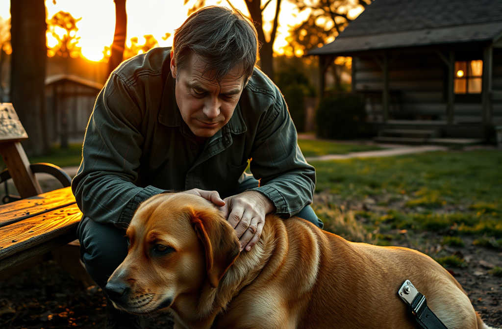 Al ver al perro tirado junto al banco, corrió hacia él. Su mirada también cayó sobre el cinturón que Natalia había dejado descuidadamente. Al divisar al animal en el suelo, no pudo evitar acercarse rápidamente. Entre lágrimas, el perro levantó sus ojos hinchados hacia su dueño.