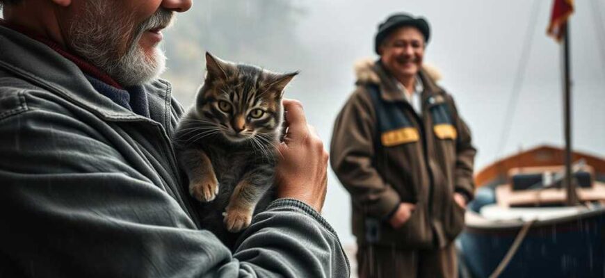 Una semana después de que nos vayamos, los vecinos regresan en la última lancha desde la casa de campo. Vuelven sin su gato, un enorme bandido gris al