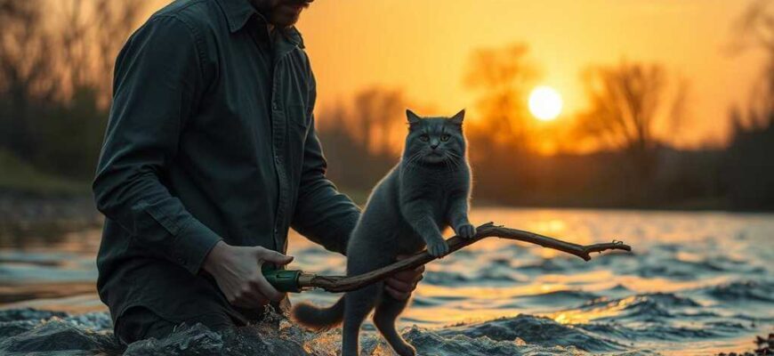 כשהגיע לשיפוע המוביל למים, מיכאל העריך את סיכוייה של החתולה להינצל. הזרימה הרגועה של הנהר בין הסלעים התלולים הפיצה שלווה. קול פכפוך הגלים על החוף האבני