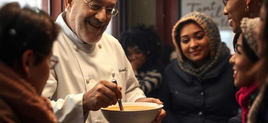 Cada persona que entraba, fuera un sintecho, un obrero, un anciano o un niño escapando del frío, recibía un tazón humeante. Pero con una condición: decir su nombre y escuchar a Julián repetirlo. Ese gesto bastaba para calentar el alma.