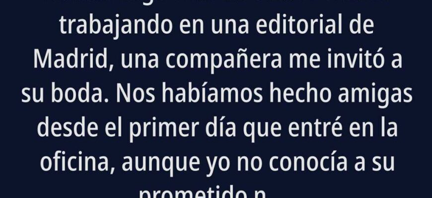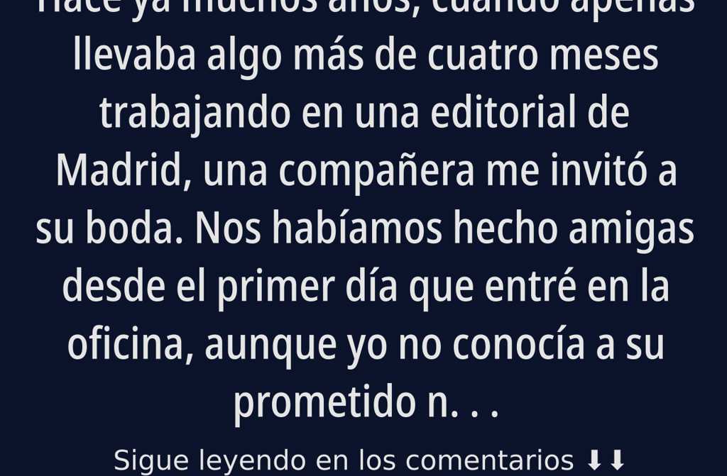 Hace ya muchos años, cuando apenas llevaba algo más de cuatro meses trabajando en una editorial de Madrid, una compañera me invitó a su boda. Nos habíamos hecho amigas desde el primer día que entré en la oficina, aunque yo no conocía a su prometido ni de lejos. A pesar de ello, acepté la invitación con ilusión, sobre todo porque tenía muchas ganas de estrenar mi vestido nuevo. Además de mí, invitó también a varios de nuestros compañeros, con los que acudí al banquete. Aquella tarde llegamos algo tarde y, cuando entramos en el salón, ya todos los invitados estaban sentados en sus mesas. Nos deslizamos discretamente hasta nuestro sitio.