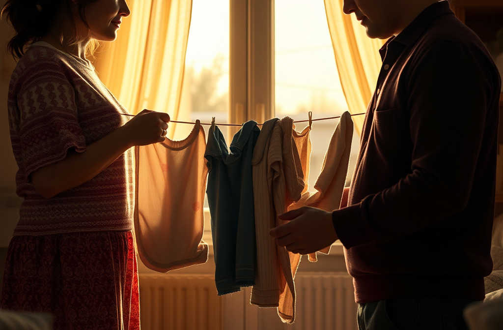 Lucía terminó de tender la ropa en el tendedero. Mejor que no fuese tan pesado y me echara una mano, pensó.