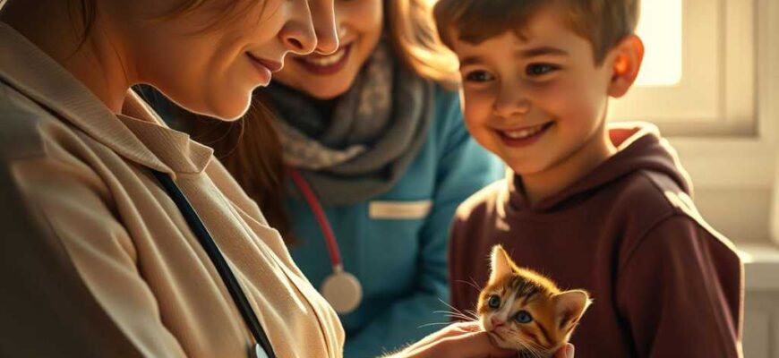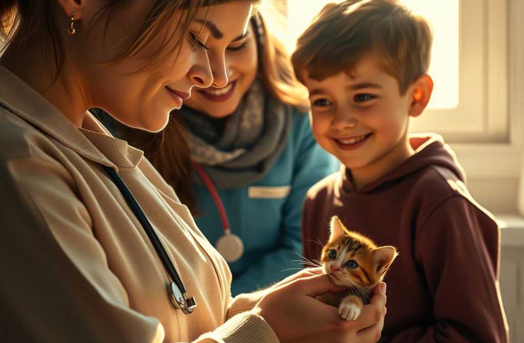 Entró en el amplio y luminoso consultorio, donde un hombre sostenía a un gato en sus brazos. A su lado, un niño acariciaba al animal asustado.