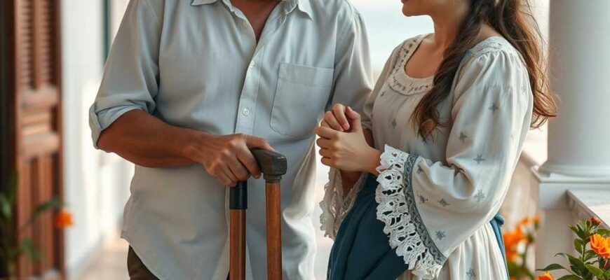 Don Fernando Ruiz de la Vega salió a la terraza apoyándose en su bastón de madera. El aire llevaba el perfume de azahar y el rumor lejano del mar. Detrás de él estaba la doña Isabel, erguida, con un delicado colgante en el cuello y la mirada fría de quien ha aprendido a ocultar el dolor.