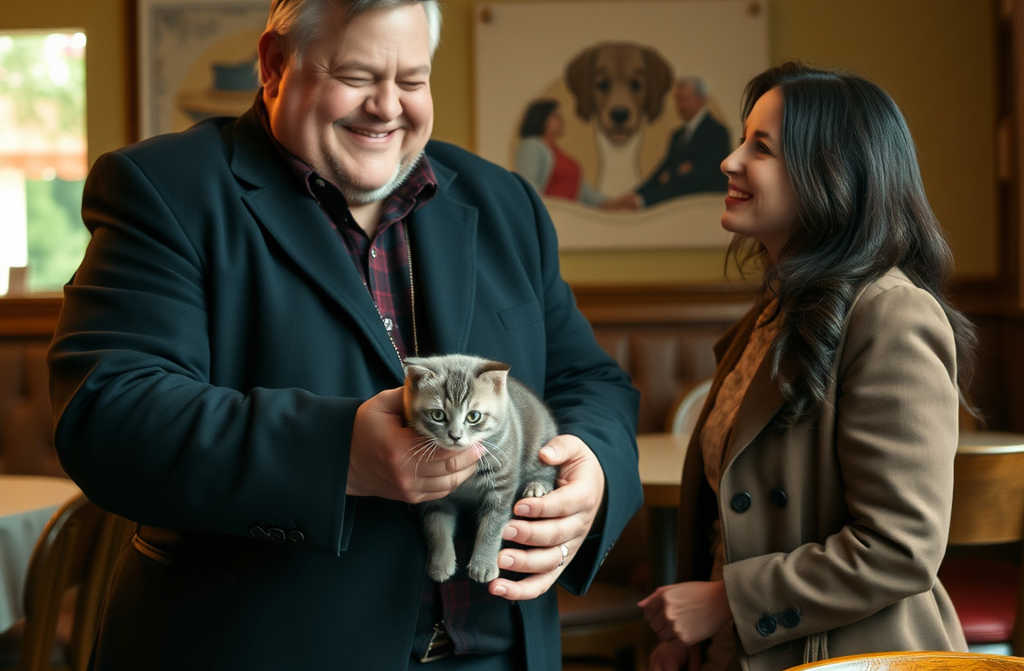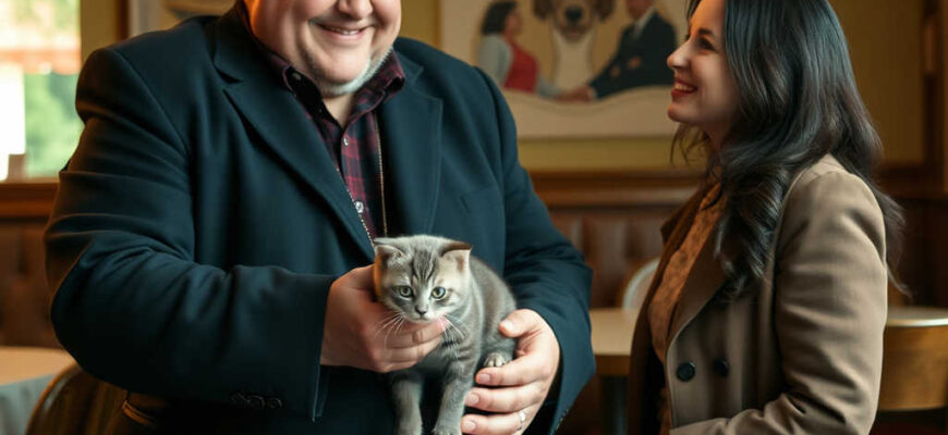 Acudió rápidamente el camarero y ofreció llevarse al gatito. Pero aquel hombre, de casi dos metros de altura, tomó al pequeño felino lloroso entre sus brazos y lo acomodó en la silla de al lado. ¡Un plato para mi amigo felino! ¡Y la mejor carne que tengáis!