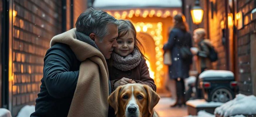La víspera de Navidad cae una nieve densa que cubre las frías calles de Madrid con un manto blanco y silencioso. En la esquina de una callejuela tras un restaurante de lujo, entre montones de cajas rotas y basura, una niña de no más de siete años duerme acurrucada en el suelo helado, aferrando contra su pecho a un perro marrón que tiembla de frío.