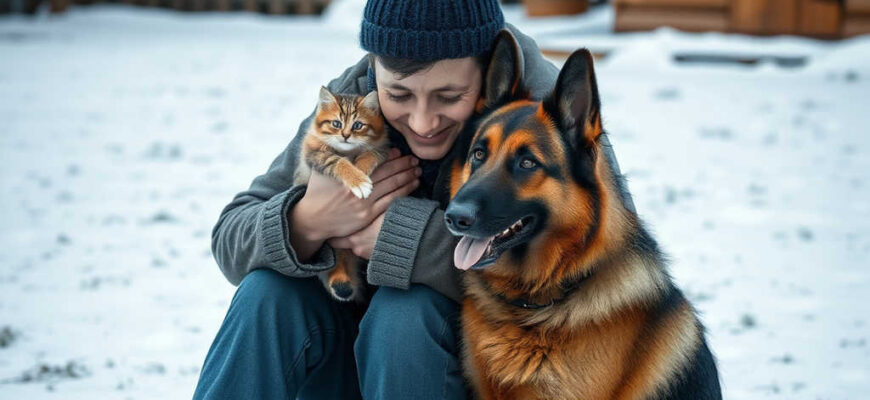 El invierno cubría el patio de Andrés con un manto suave de nieve, pero su leal perro Graf, un enorme pastor alemán, se comportaba de manera extraña. En vez de refugiarse en la gran caseta que Andrés le había construido con cariño el verano pasado, Graf insistía en dormir fuera, directamente sobre la nieve. Andrés lo observaba desde la ventana con un nudo en el pecho — Graf jamás se había comportado así. Cada mañana, cuando salía a verle, Andrés notaba que Graf lo miraba con tensión. Al acercarse a la caseta, el perro se situaba entre él y la entrada, gruñía suavemente y lo miraba suplicante, como diciendo: “Por favor, no entres ahí”. Este comportamiento, tan inusual en una amistad de tantos años, hizo que Andrés se preocupara — ¿qué escondía su mejor amigo? Decidido a descubrir la verdad, Andrés ideó un pequeño plan: atrajo a Graf a la cocina con un jugoso filete. Mientras el perro, recluido en casa, ladraba desesperado tras la ventana, Andrés se acercó a la caseta y se agachó para mirar dentro. El corazón se le paró: al acostumbrarse sus ojos a la oscuridad, vio algo que le heló la sangre… …Dentro, arropado en una manta, se encontraba un pequeño gatito — sucio, aterido y apenas respirando. Sus ojitos se abrían con dificultad y el cuerpo le temblaba de frío. Graf lo había encontrado en algún lugar y, en vez de ahuyentarlo o dejarlo allí, lo había acogido. Dormía fuera para no asustarlo y vigilaba la entrada, como si en la caseta guardara un tesoro preciado. Andrés contuvo el aliento. Con muchísimo cuidado, recogió al diminuto ser y lo arrimó a su pecho. En ese instante, Graf corrió hacia él y se acurrucó a su lado — no gruñendo, sino atento, dispuesto a ayudar. — Eres un perro bueno, Graf… — susurró Andrés, abrazando al gatito. — Mejor que muchos humanos. Desde aquel día, en el patio ya no vivían solo dos amigos, sino tres. Y la caseta, construida con cariño, volvió a tener sentido — como un pequeño hogar para almas rescatadas.