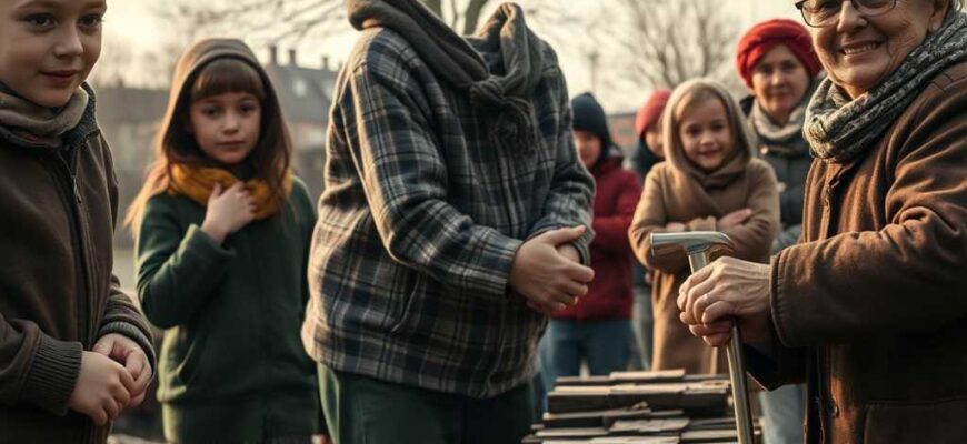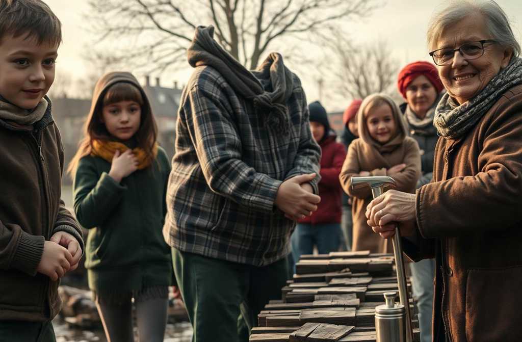 Al amanecer, todo el pueblo sabía que tenían luz verde. Junto al puente viejo, había pilas de maderas nuevas. Los hombres se reunieron al borde del agua antes del alba: Tomás, con su vieja chaqueta, fue el primero en clavar la pala. Otros llegaron con hachas o alambre. Las mujeres no se quedaron atrás: llevaron té, guantes, pan con chorizo.
