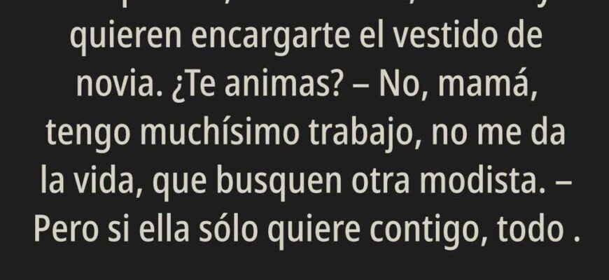 No, mamá, tengo muchísimo trabajo, no me da la vida, que busquen otra modista.