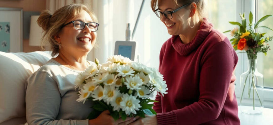 Carmen hundió el rostro entre los crisantemos, cerró los ojos de alegría y corrió a abrazar a Teresa, su compañera de hospital