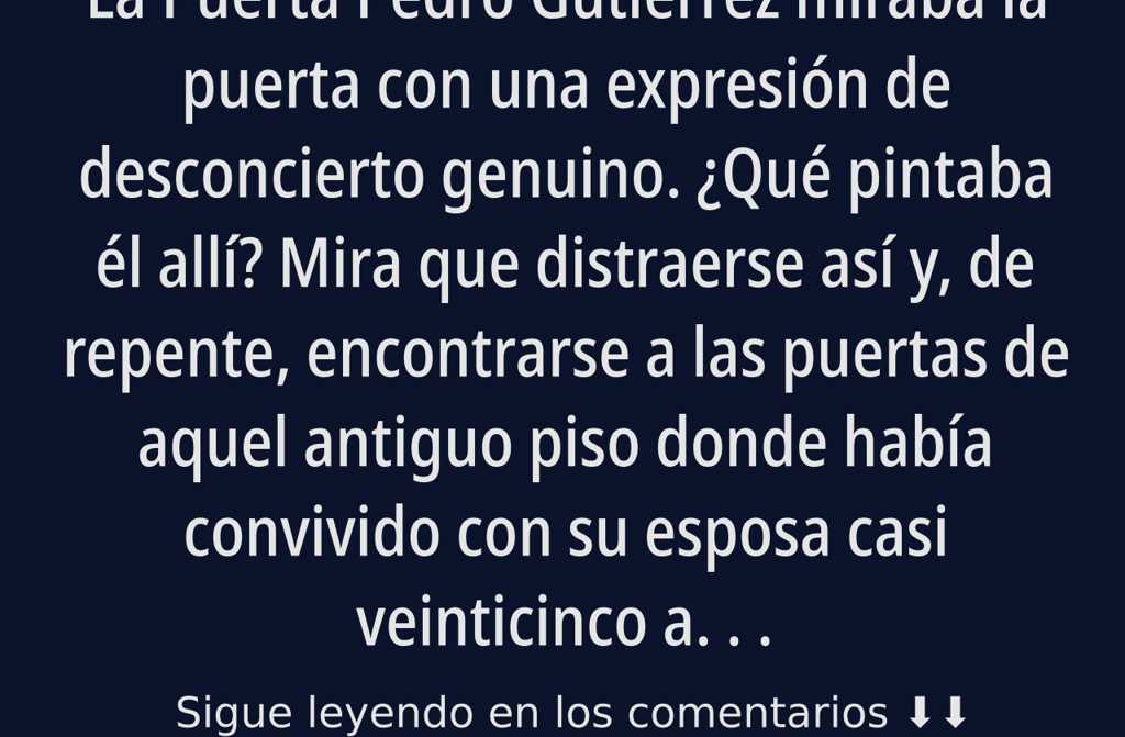 Pedro Gutiérrez miraba la puerta con una expresión de desconcierto genuino. ¿Qué pintaba él allí? Mira que distraerse así y, de repente, encontrarse a las puertas de aquel antiguo piso donde había convivido con su esposa casi veinticinco años. Y allí estaba él, asombrado, observando la puerta que se plantaba justo delante de sus narices. Una puerta, a decir verdad, del montón, igual que tantas otras del bloque.