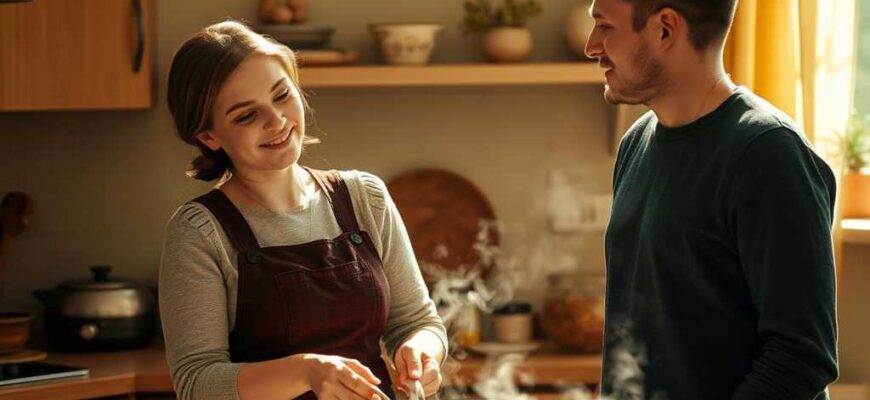 ¡Manos! El hombre tiene otras tareas. ¡Es el sostén! El calor del hogar, la limpieza, el orden son sagradas obligaciones de la mujer. Si no lo consigues, ¿tal vez deberías renunciar al trabajo? ¿O levantarte antes? Yo, a mis tiempos, me ponía la alarma a las cinco para freírle a mi marido churros antes de su turno. ¿Y tú? ¿Solo comes comida precocinada?
