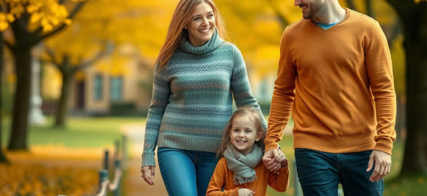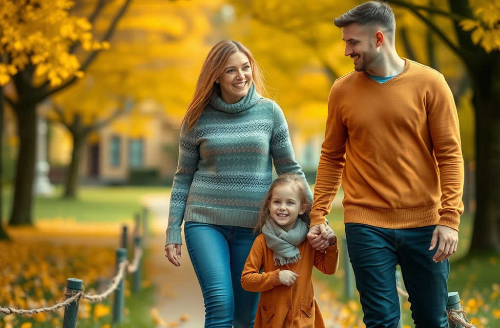 Una familia: madre, padre y una niña de unos dos años. La madre reía lanzando hojas amarillas al aire, el padre cogía a la niña de la mano y ella, entre risas, trataba de saltar para alcanzarlas.