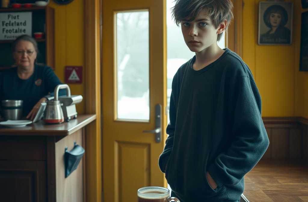 El tintineo de la campana anunció su llegada. Dos figuras entraron arrastrando el viento gélido: un chico alto, de mejillas marcadas por el hambre y zapatillas desgastadas, cargando en brazos a una niña pequeña. Su pelo enmarañado y su mirada huidiza delataban años de huida.