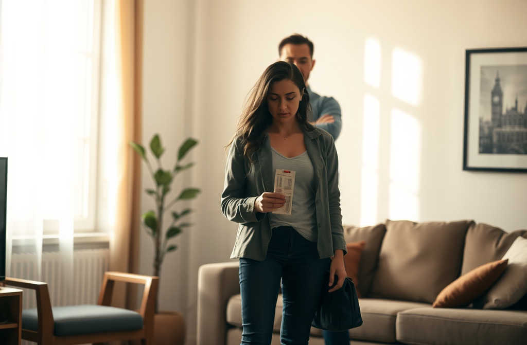 Lucía estaba en medio del salón, con un billete de vacaciones en su bolso. Los ojos de Carlos ardían de rabia, y su voz resonaba contra las paredes como un eco. Ella sentía que todos esos años de sacrificios, todos los sueños enterrados bajo el peso de la hipoteca y las promesas incumplidas se acumulaban ahora dentro de ella como una ola, lista para ahogarla.