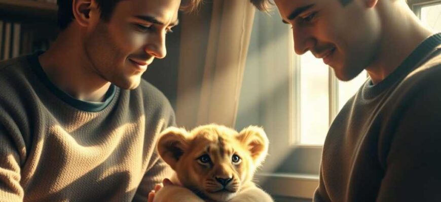 Un día, paseando por las calles, descubrieron una tienda de animales exóticos. En el escaparate había pájaros, monos y reptiles, pero algo llamó su atención: una pequeña jaula donde yacía un cachorro de león. No era más grande que un gatito, con unos ojos tristes y profundos que parecían entenderlo todo.