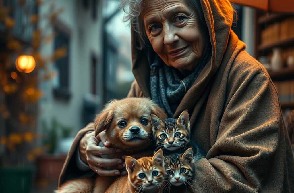 Corgi se acurrucó contra ella, Bigotes ronroneó junto a su mano. La mujer los acarició y murmuró: