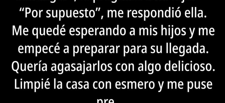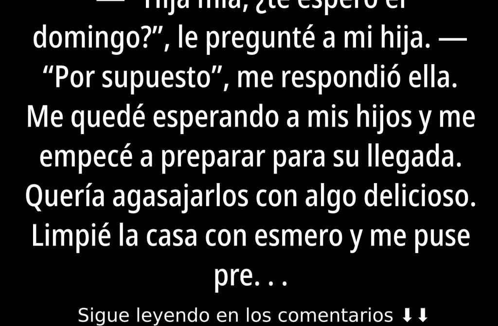 Me quedé esperando a mis hijos y me empecé a preparar para su llegada. Quería agasajarlos con algo delicioso. Limpié la casa con esmero y me puse presentable. Puse la mesa con esmero y lo único que quedaba era sentarme a esperar a los invitados. Pero nadie llegó a la hora acordada. Comencé a inquietarme, pensando si les habría pasado algo. Había dejado preparado un sobre con cierta cantidad de euros para ellos, porque sabía cuánto deseaban cambiar de coche. Finalmente, decidí llamar a mi hija. Cogió el teléfono y contestó medio dormida: