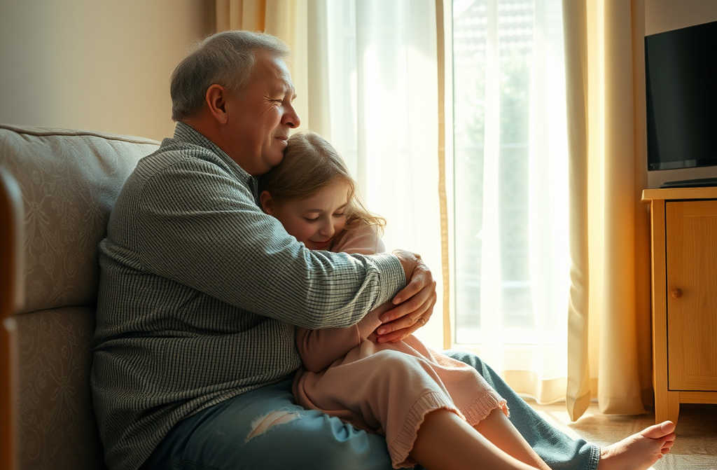 Papá y yo nos fuimos de su piso. Y de vuelta en el mío, caminé hacia él y me abracé fuerte, escondiendo la cara en su chaqueta áspera.