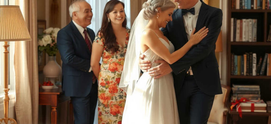 El día de la boda, el clima fue perfecto, aunque el pronóstico anunciaba lluvia. Inés resplandecía con su vestido de seda, adornado con encaje delicado. Alberto no pudo quitarle los ojos de encima en todo el día; su novia era simplemente fascinante. La jornada estuvo llena de alegría. El fotógrafo trabajó con gran entusiasmo, capturando cada instante, y los invitados esperaban ansiosos el banquete en el restaurante.