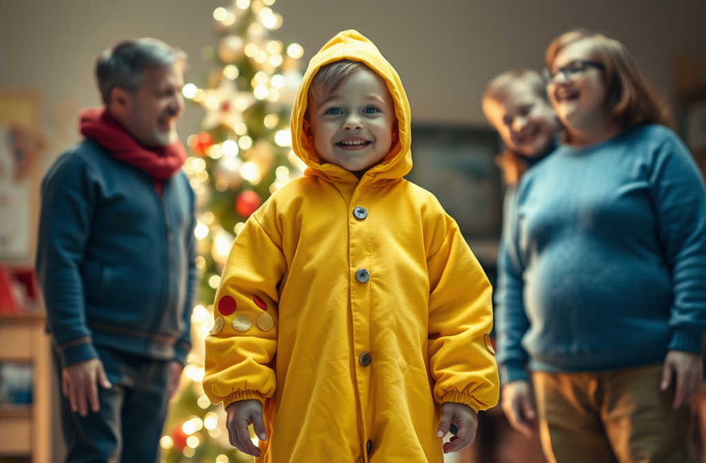 En la función de Navidad, a mi hijo de cinco años le adjudicaron el papel de pepinillo. Al enterarme la víspera de mi turno de guardia, compré una camiseta verde, cartulina de colores y, llena de inspiración, pasé la noche cosiendo unos pantalones verdes a juego y pegando una gorra de cartulina verde claro con un rabito hecho de alambre forrado en tela verde.