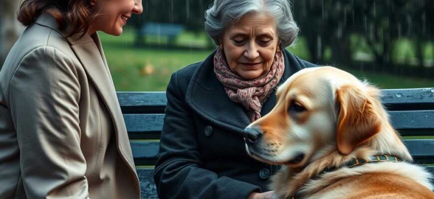 Me acerco y me siento a su lado. Canela, compasivo, apoya su cabeza en su regazo y ella lo acaricia con una mano temblorosa.
