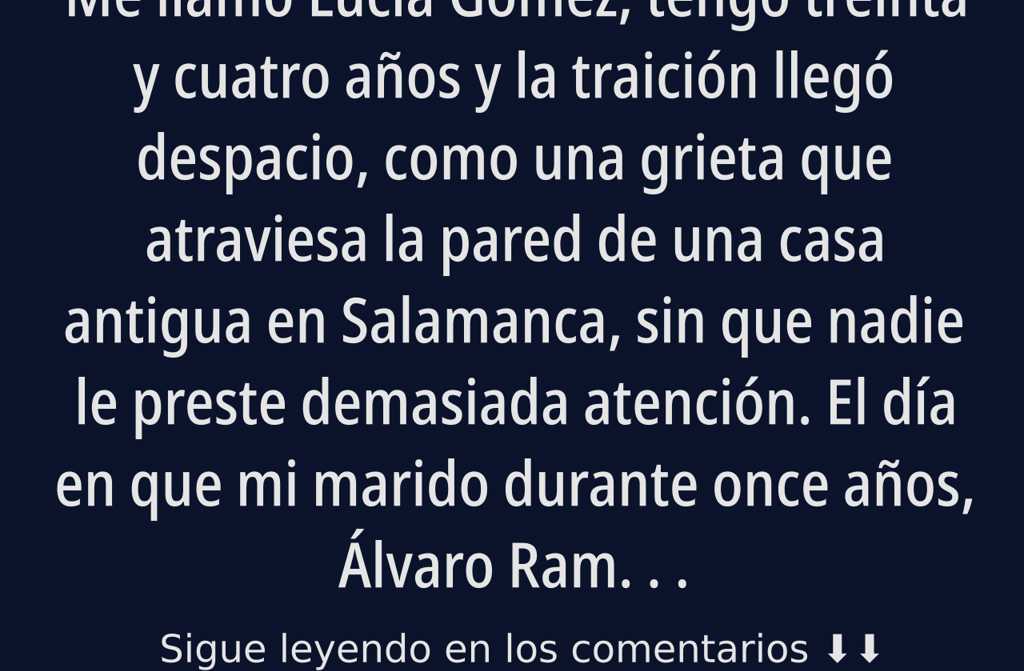 Me llamo Lucía Gómez, tengo treinta y cuatro años y la traición llegó despacio, como una grieta que atraviesa la pared de una casa antigua en Salamanca, sin que nadie le preste demasiada atención. El día en que mi marido durante once años, Álvaro Ramírez, me pidió el divorcio, lo hizo sentado al borde de la cama, con una frialdad que me dolió más que cualquier grito. Dijo, apenas mirándome a los ojos, que ya no sentía lo mismo y que necesitaba empezar una nueva etapa. Me quebré en lágrimas, le rogué, le pregunté qué había hecho mal. Él bajó la vista. Dos semanas más tarde, lo supe todo por error: un mensaje al móvil que no estaba dirigido a mí. Mi propia madre, Teresa, se equivocó de destinatario: Cariño, hoy se lo he contado a Lucía, lo del divorcio. Pronto podremos estar juntos sin secretos.
