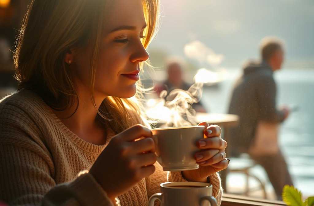 Hoy, Lucía tiene una cafetería junto al lago. Se llama *«Almendro»*. Nunca acepta café que no haya preparado ella.