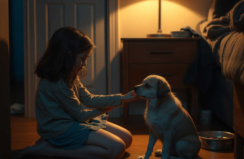 En casa, extendí una manta vieja junto al radiador. Agua, comida en su plato. Se acercó, olfateó, se sentó, me miró y luego fijó la vista en la puerta. Durante mucho tiempo. Como si comprobara si estaba bien cerrada.