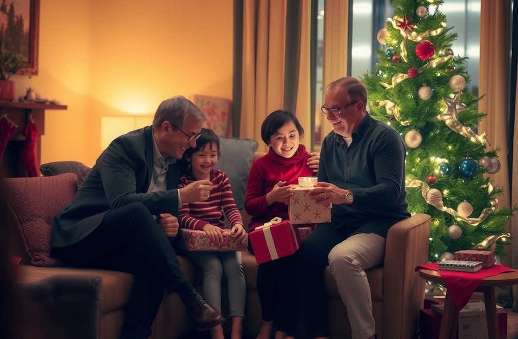 En alguna vivienda de Granada, la familia se junta alrededor de un árbol de Navidad decorado con luces suaves y bolas que parecen flotar. Las manos se abren y cierran sobre regalos envueltos en papel brillante, con los niños Lucía, Sofía, y Carmen riendo suavemente, como si las voces vinieran de otra dimensión. El padre, don Javier Fernández, observa la escena con una satisfacción que parece diluirse en el aire, logrando reunir a sus hijas en Nochebuena como siempre lo había imaginado, aunque el tiempo y las distancias parecieran borrar los vínculos.