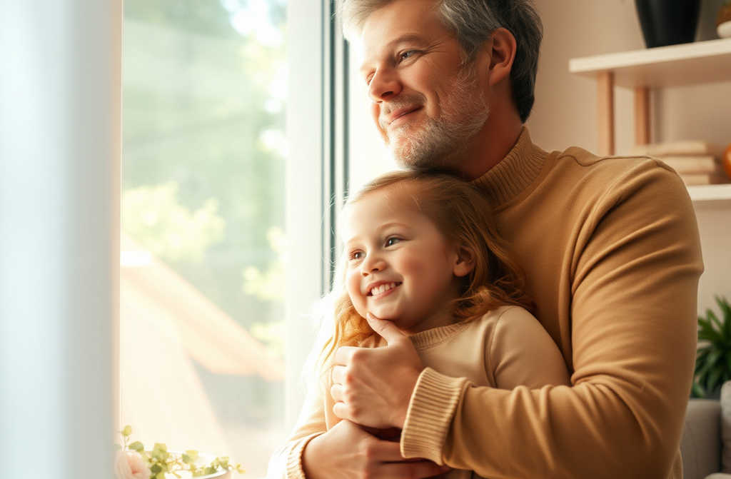 Los ojillos de la niña brillaron con lágrimas. Se abrazó al cuello de su padre y le susurró al pecho: