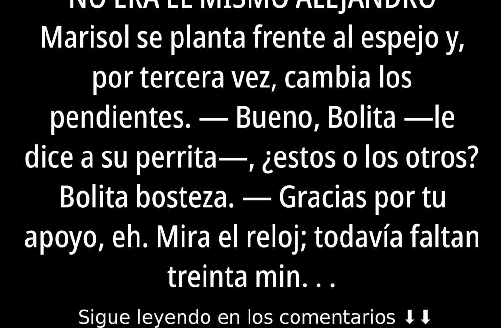 Papá anuncia, tengo una historia larguísima que contarteSe oyen risas y cuchicheos mientras todos se apretujan para la foto familiar. Marisol toma la mano temblorosa de Alejandro entre las suyas y sonríe al objetivo, como si el destino hubiera orquestado esa escena imposible. Justo cuando el flash va a dispararse, Bolita irrumpe en el salón, salta y ladra, desbaratando la pose: la abuela, indignada, el padre entre divertido y resignado, los dos Alejandros confundidos con los ramos cruzados.