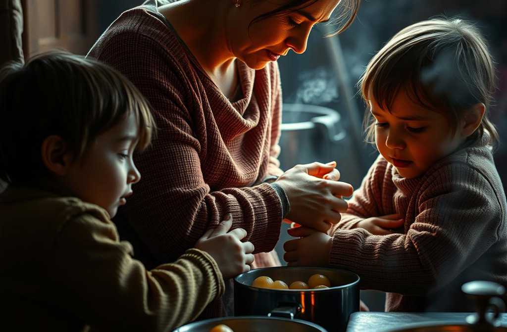 La mujer forzó una sonrisa, pero su corazón se partió en dos. En la cocina, una pequeña olla de patatas hervía, y en el horno ardía la última astilla de leña. Ana abrazó a sus hijos y en silencio rezó: