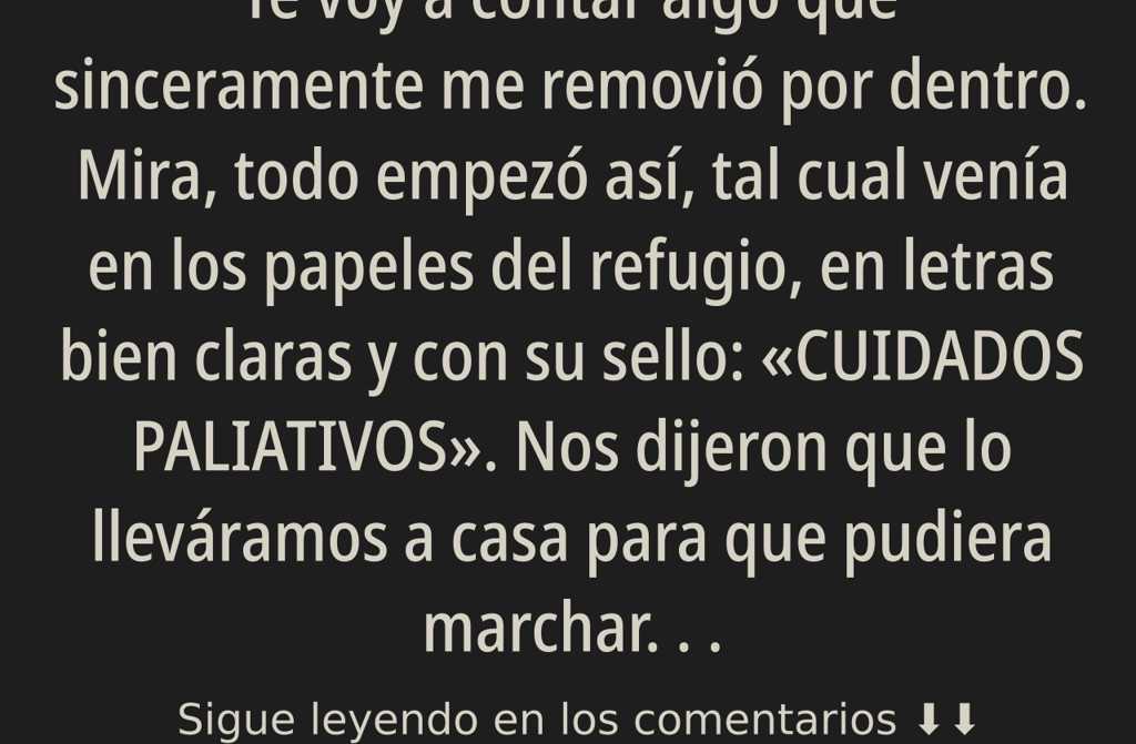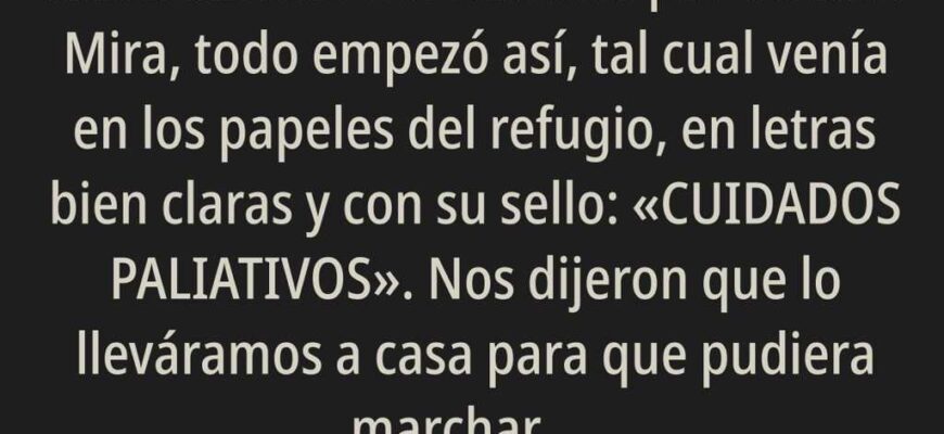 Te voy a contar algo que sinceramente me removió por dentro. Mira, todo empezó así, tal cual venía en los papeles del refugio, en letras bien claras y con su sello: «CUIDADOS PALIATIVOS».