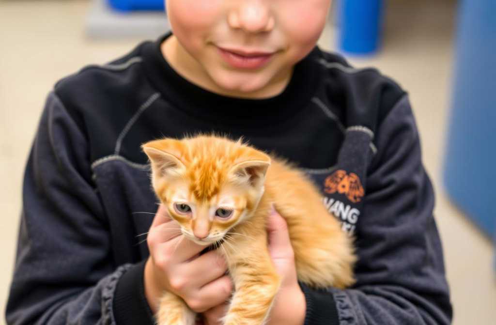 El niño alzó un gatito pelirrojo como el sol. El animal, al ver el rostro temible de la mujer, no se asustó.
