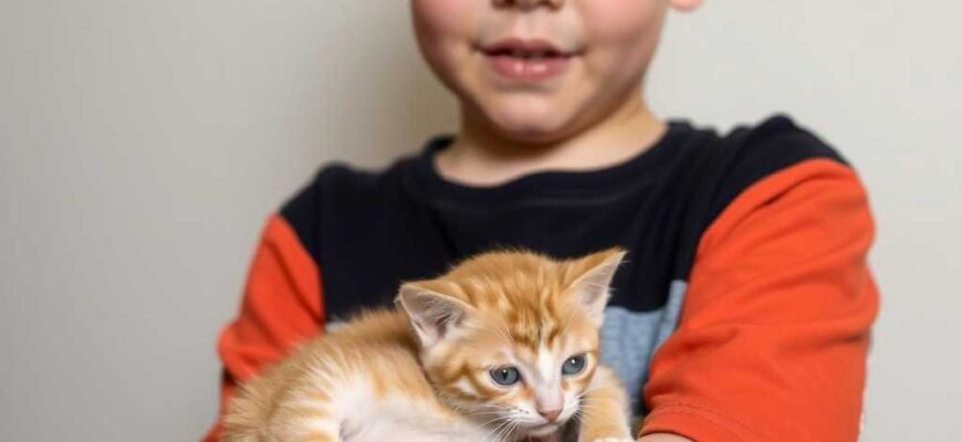 Él levantó un gatito pelirrojo como el sol. El animal, al ver aquel rostro temible, no se asustó.