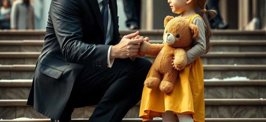 La niña en los escalones Casi no la ve. En el bullicio de las reuniones de lunes por la mañana, entre el taconeo de zapatos y el zumbido de llamadas telefónicas