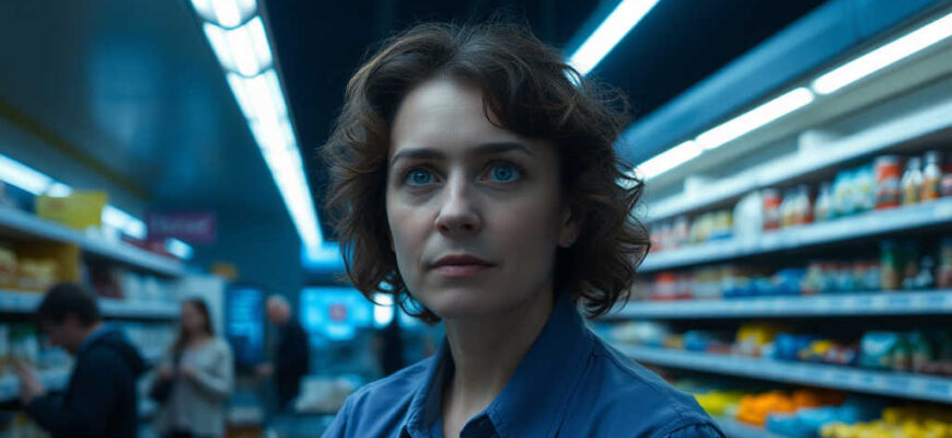 Tarde en el supermercado. Una noche tarde en el supermercado del barrio. Irene estaba sentada en la caja, con lágrimas en los ojos, agotada por el cansancio