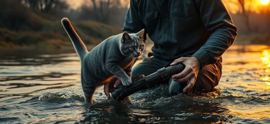 Tras descender por la hondonada que llevaba al agua, Miguel evaluó las posibilidades del gato para escapar. El curso constante del río, encajonado entre