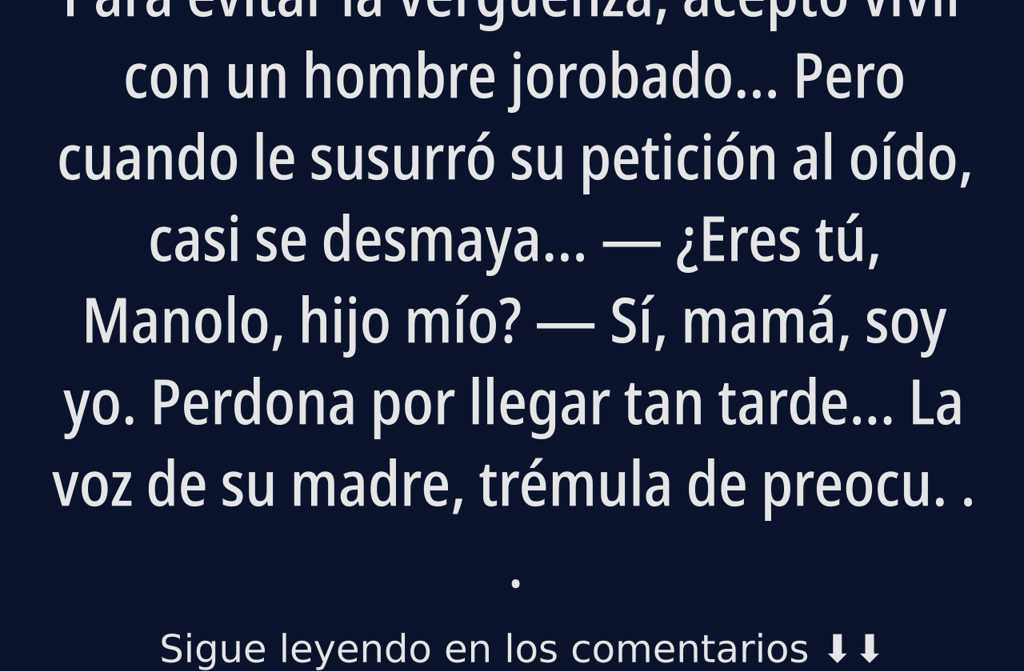 Cuando ella cayó enferma, no volvió a levantarse. Manolo se convirtió en hijo, hija, enfermero y niñera a la vez. Fregaba el suelo, preparaba guisos, le leía viejas revistas. Y cuando doña Mercedes se fue suave, como el viento que se lleva las hojas, él estuvo junto a la caja, apretando los puños, sin soltar ni una lágrima. Ya no le quedaban.