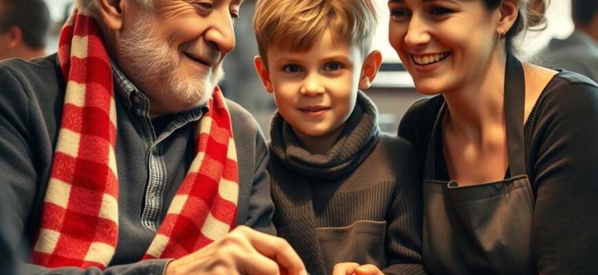 En el salón, el público saludaba al entrañable trío: abuelo, nieto y cocinera. Alguien se levantó, se inclinó y agradeció.