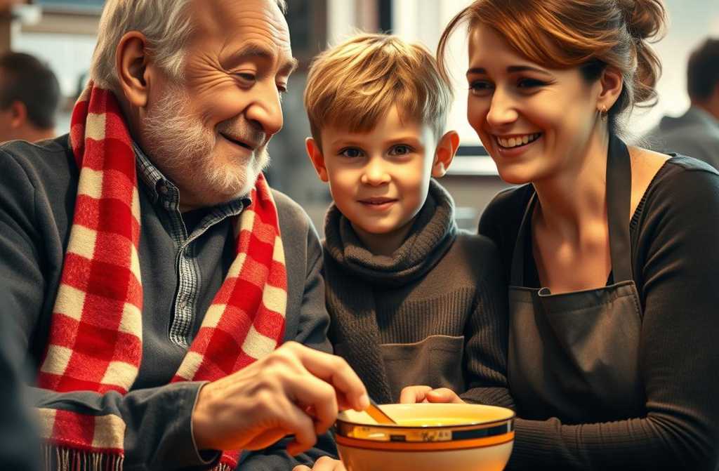 ¡Qué aproveche, chicos! exclamaba mientras le agradecían.