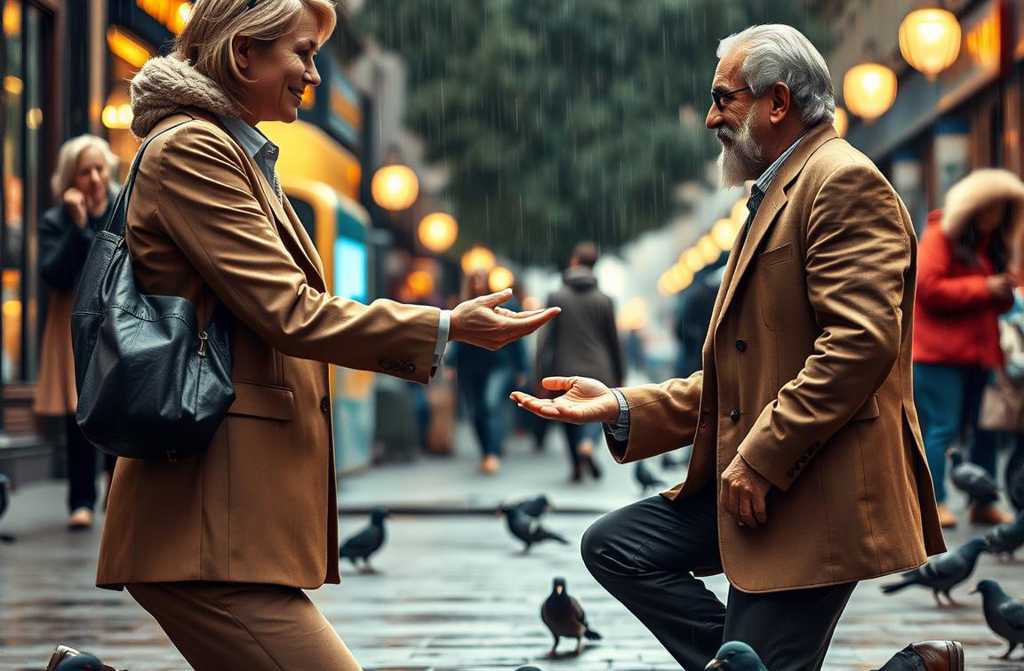 Elena no le dio importancia hasta que lo vio con sus propios ojos. El hombre sin hogar, quizá de cuarenta y tantos años, con ojos cálidos bajo capas de barba y suciedad, alineaba migajas en el bordillo, hablando dulcemente a cada paloma como a un amigo. Lucas se quedaba a su lado, mirándolo con una calma que su madre no le veía desde hacía meses.