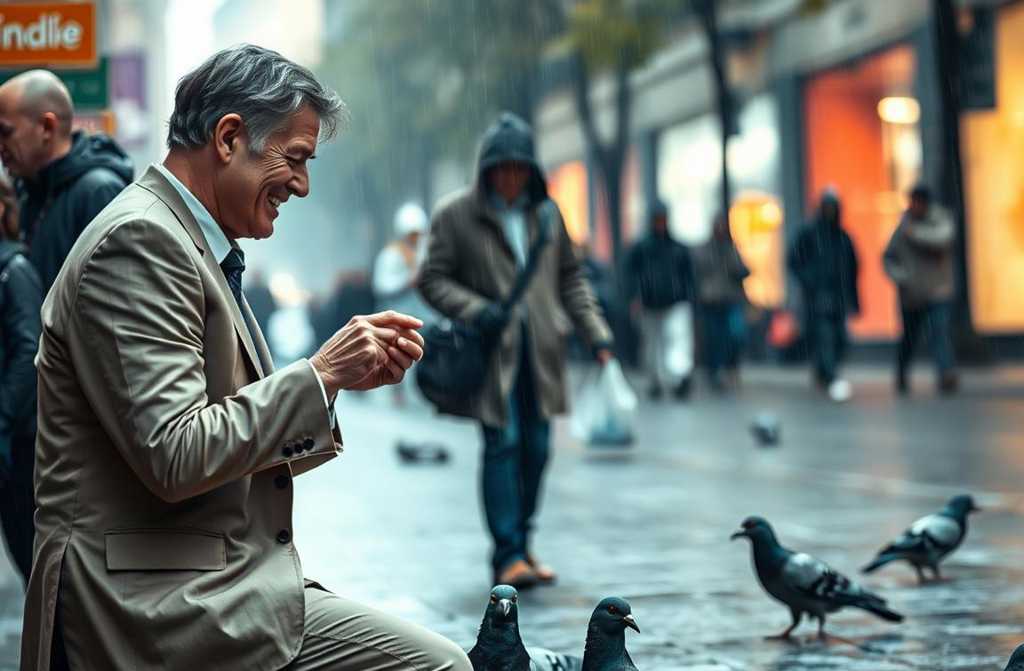 Lucía no le dio importancia hasta que lo vio con sus propios ojos. El sintecho, quizá en sus cuarenta, con ojos cálidos bajo capas de barba y suciedad, alineaba migajas en el murete, hablando suavemente a cada paloma como si fuera un amigo. Adrián permanecía a su lado, mirándolo con una serenidad que su madre no veía en él desde hacía meses.