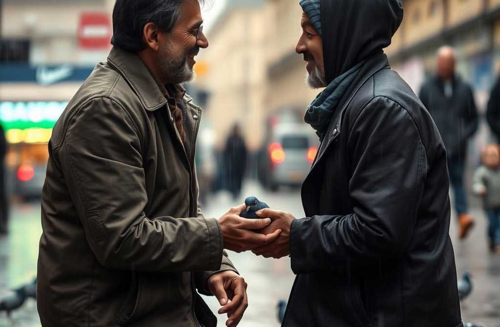 Elena lo ignoróhasta que lo vio ella misma. El hombre, de unos cuarenta años, con ojos cálidos bajo capas de suciedad y una barba desaliñada, desmigajaba pan en la barandilla de piedra mientras hablaba en voz baja con cada paloma, como si fueran viejos amigos. Lucas se quedó mirando, con una calma que ella no había visto en meses.