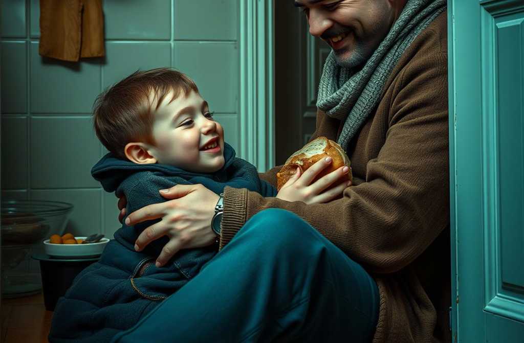 Corrí a la tienda, compré varios bocadillos, una botella de agua y una bolsa de patatas. Carlos se aferró a mi mano mientras nos dirigíamos a su domicilio. El portal era demasiado alto para él y no pudo abrirlo. Cuando entró, corrió al salón, tomó un pan y empezó a devorarlo sin masticar. Yo dejé la comida sobre la mesa y le dije:
