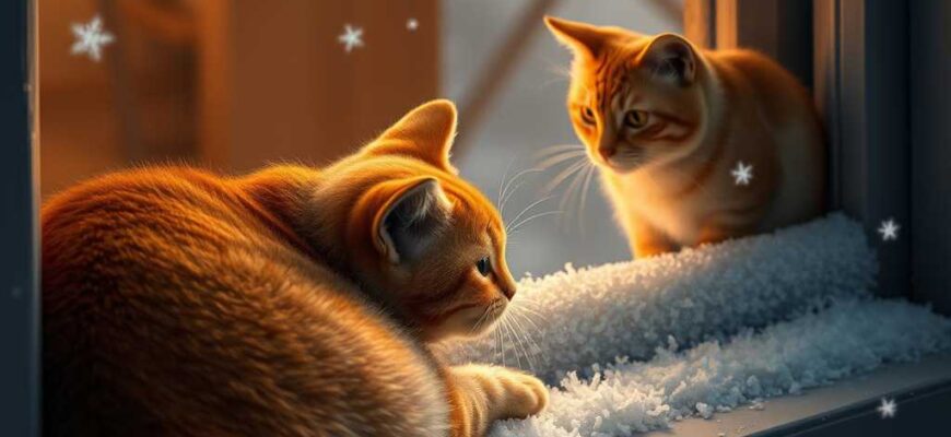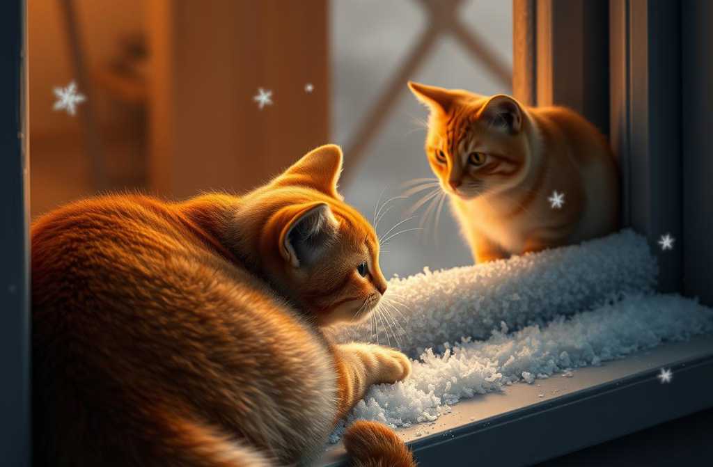 La gata siguió mirando la nieve que cubría al anaranjado. Maulló, curiosa, como pidiendo que se moviera. Golpeó el vidrio con la pata, sin obtener respuesta. Maulló de nuevo, más fuerte. Luego golpeó con más fuerza, como gritando: «¿Por qué no respondes?»