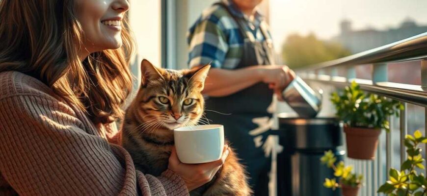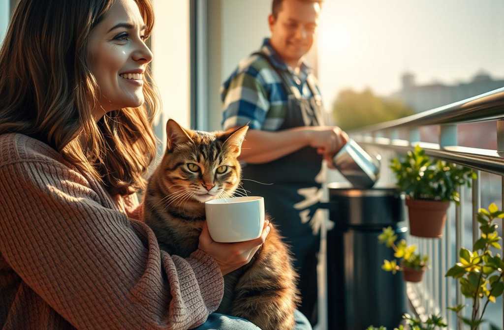 Seis meses más tarde está en el balcón de su piso con una taza de café, mirando la ciudad que ya le resulta familiar. A su lado duerme un gato que encontró en el portal del edificio hace un mes. En la habitación contigua Martín tropea platos mientras prepara el desayuno.